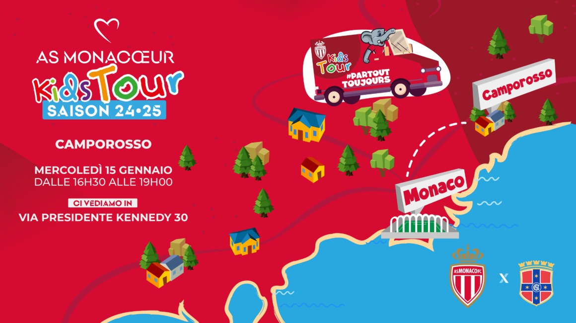 La nona tappa del Kids Tour si terrà mercoledì 15 gennaio a Camporosso. L’evento si svolgerà dalle 16:30 alle 19:00 presso lo stadio dell’US Camporosso… Per la seconda volta in questa stagione, la carovana biancorossa fa tappa in Italia! Dopo Ventimiglia il 13 ottobre scorso, il programma itinerante tocca la comunità di Camporosso in Liguria.