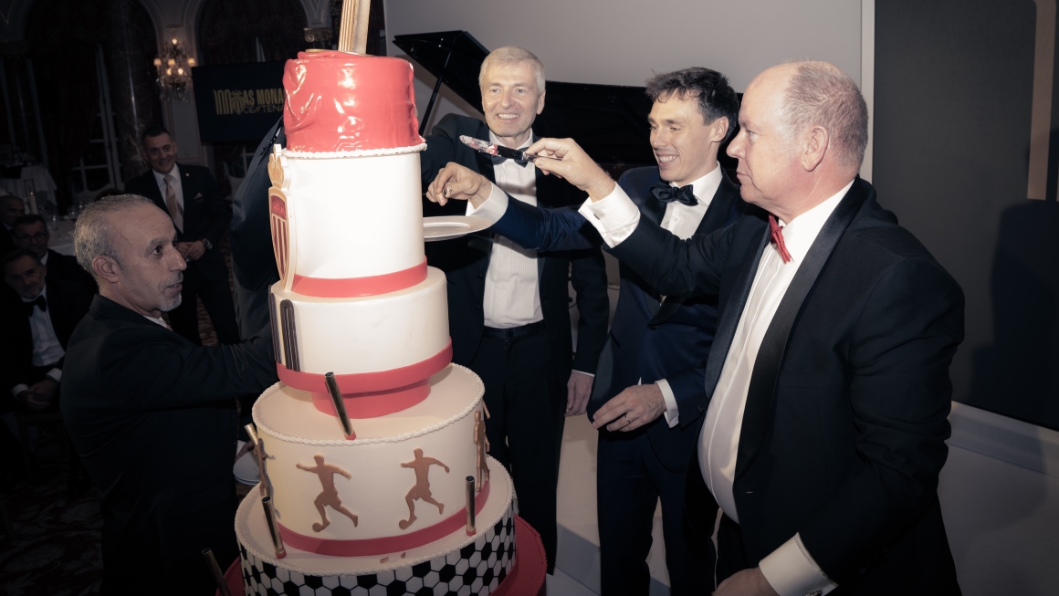 Une réception qui a été rythmée par plusieurs animations placées sous le signe du football. Parmi elles, un quizz sur l’histoire du Club brillamment remporté par S.A.S. le Prince Albert II de Monaco, qui s’est vu remettre une œuvre d’art réalisée durant la soirée par l’artiste Djiango, avant de couper symboliquement, avec le Président Dmitry Rybolovlev, l’impressionnant gâteau d’anniversaire aux couleurs du Club, aux côtés de Stéphane Morandi (membre du Conseil d’administration) et de Louis Ducruet.