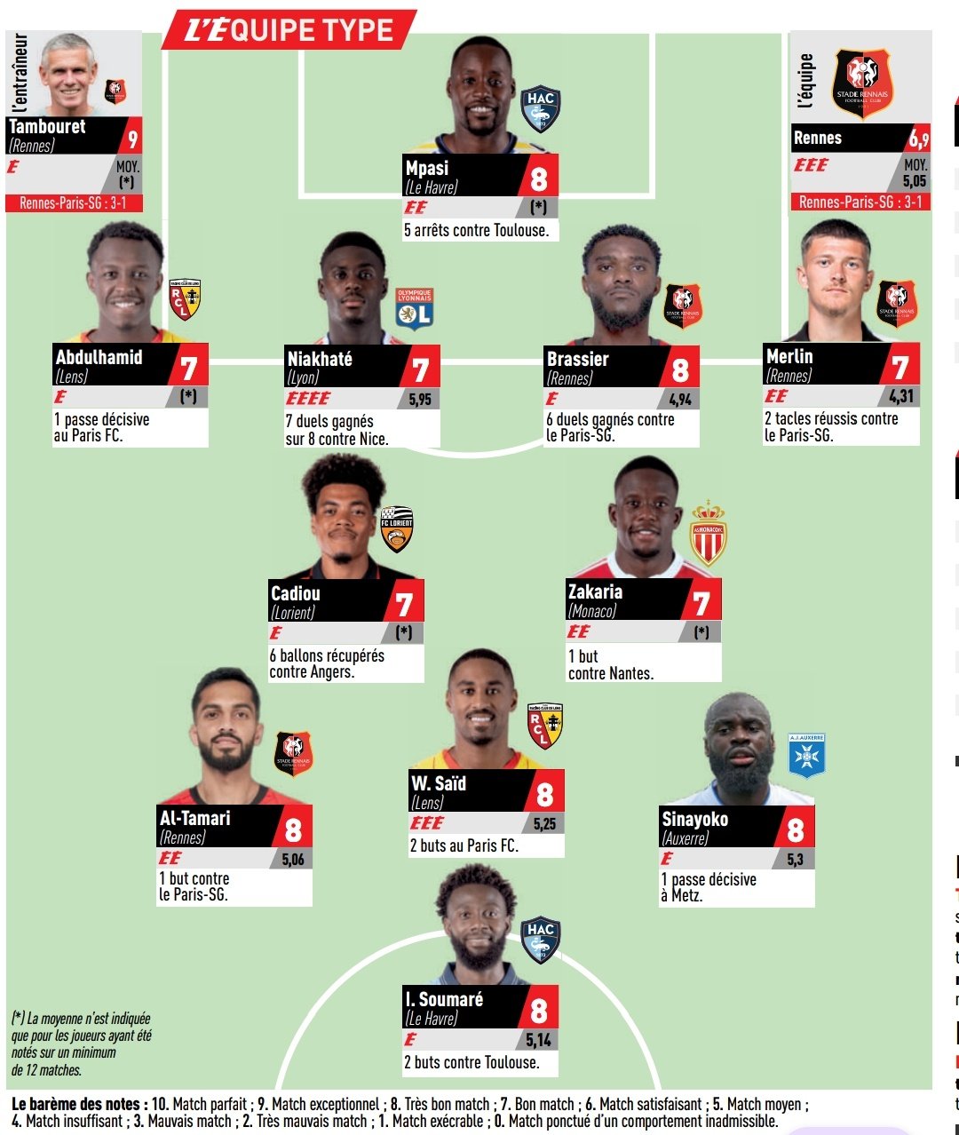 • Ligue 1 - J20 : AS Monaco 4-0 Stade Rennais = Maghnes Akliouche (3), Mamadou Coulibaly (2), Denis Zakaria (1) et l'AS Monaco (1)