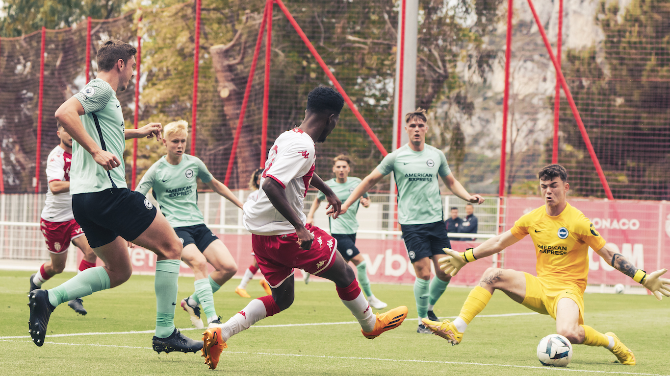 D’abord par Enzo Baglieri, dont la reprise passe au-dessus (19e) puis par Lucas Michal, contré in-extremis par un défenseur (37e). Salatiel voit ensuite sa frappe puissante être déviée par le gardien en corner (38e). Malheureusement, en ne concrétisant pas leurs occasions, les Monégasques restent sous la menace de Brighton. Et c’est ce qu’il va se passer avant la pause avec un but encaissé de la tête sur corner, signé Boiley Smith (42e).