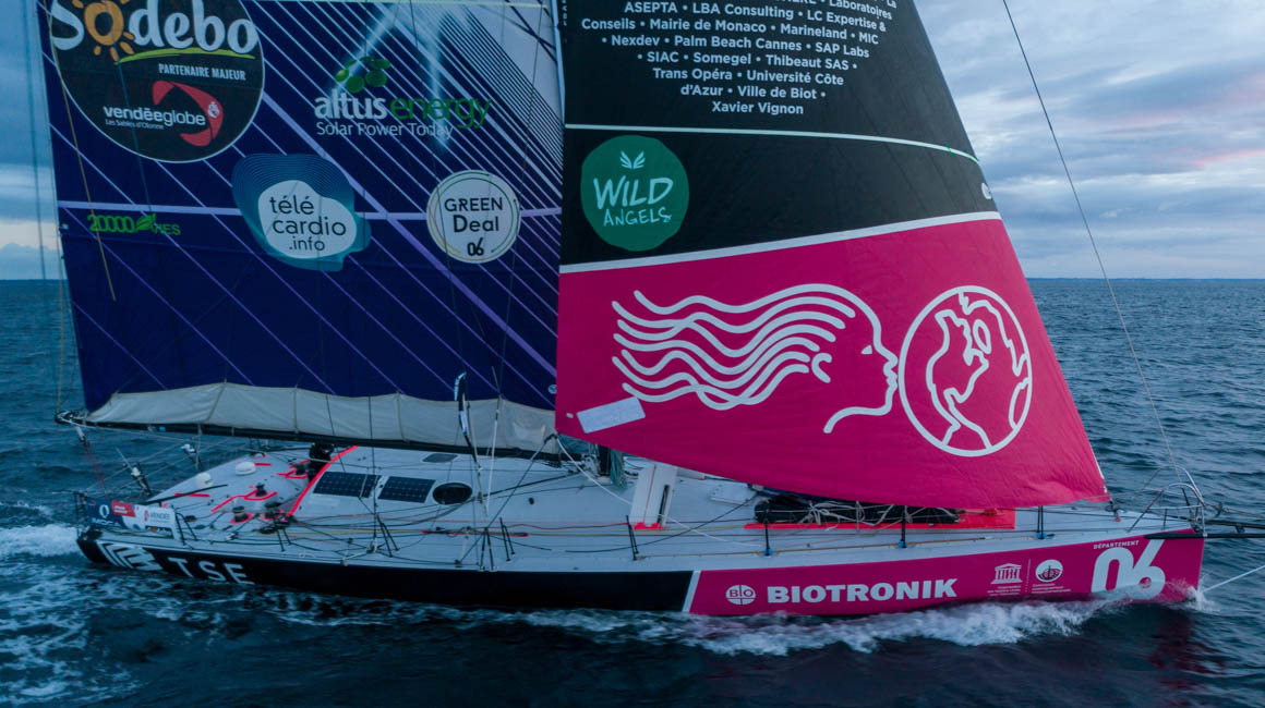 Yes, of course. My boat is called TSE - 4myplanet. TSE is a Sophia-Antipolis company that works on green energy and produces electricity through solar panels. It totally aligns with the values of my group 4myplanet, that I created to fight for the preservation of the oceans, the protection of the environment, and also to take actions in education. It is therefore very nice to be able to display these colors on my boat to participate in this legendary race, the Vendée Globe.