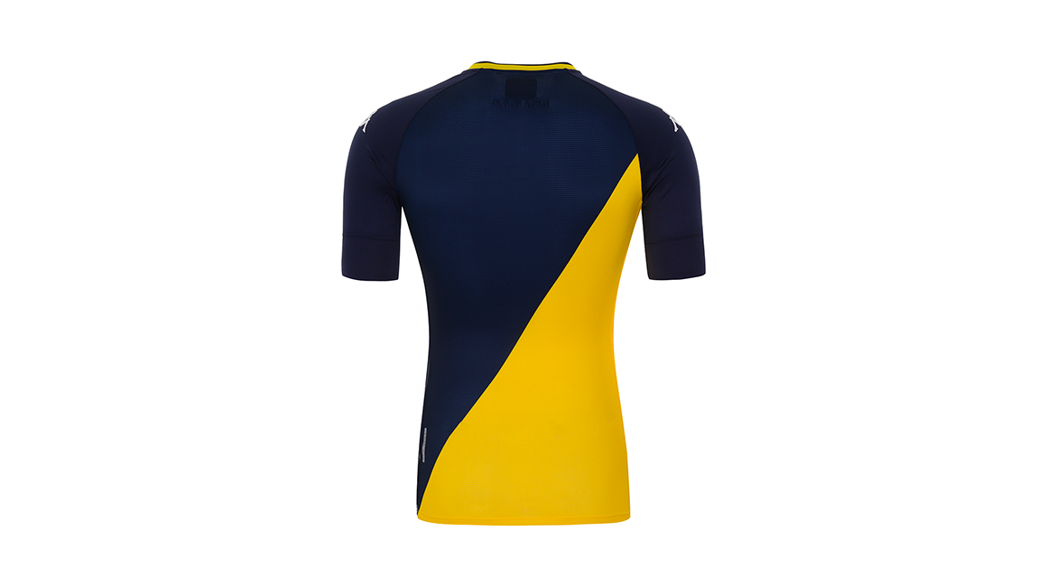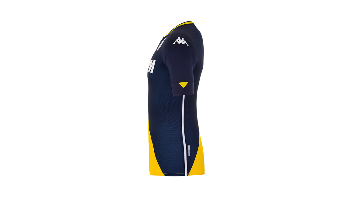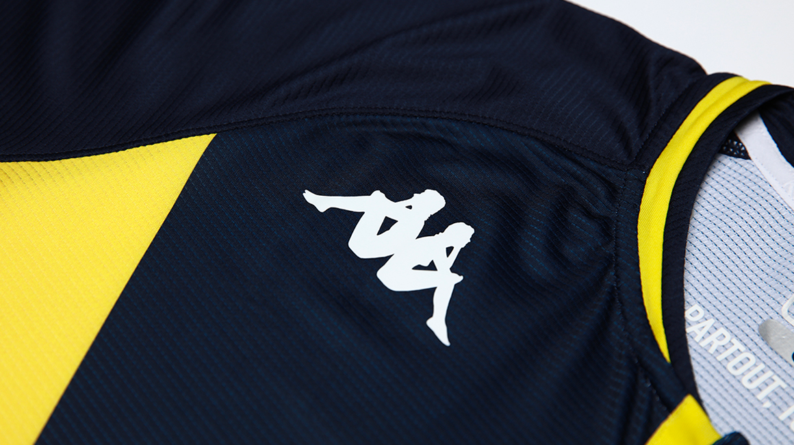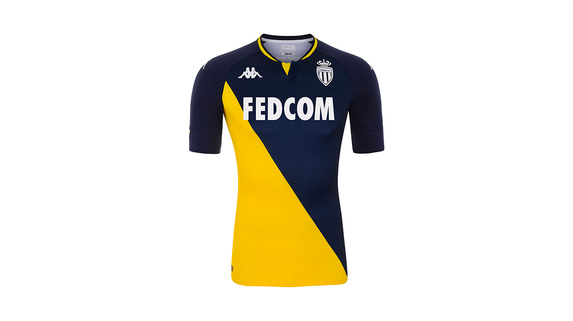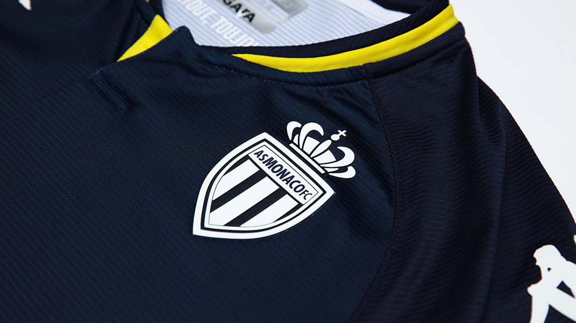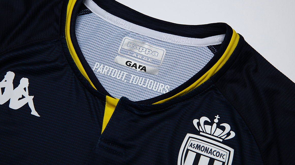 This KOMBAT™ PRO jersey, like the home kit, continues to celebrate the elegant diagonal designed by Princess Grace 60 years ago. On this occasion, the club and the Italian equipment manufacturer wanted to revisit the blue and yellow away jersey worn at the end of the 1990s and, in particular, during the 1999-2000 season, one in which the club one its 7th French league title.
