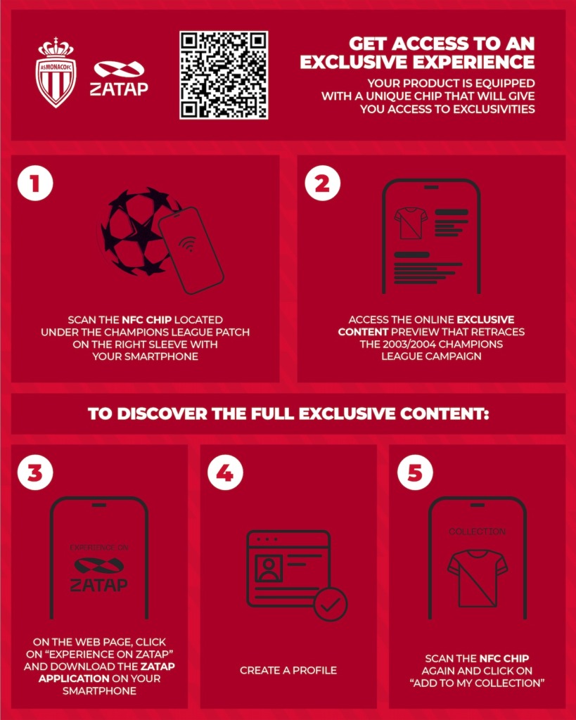 Faithful to the style of the era, this collector's jersey is also equipped, for the first time, with an NFC chip placed under the Champions League badge on the right sleeve. This will allow supporters to access, via their smartphone and the ZATAP application, exclusive content and numerous surprises, linked to this epic story forever engraved in our memories.