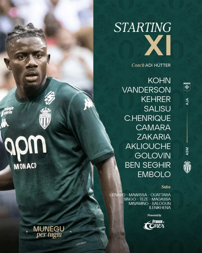 AS Monaco: Köhn – Vanderson (Teze, 88'), Kehrer, Salisu, C.Henrique – Zakaria ©, Camara (Singo, 90+10') – Ben Seghir (Balogun, 64'), Golovin (Minamino, 64'), Akliouche (Magassa, 83') – Embolo (Ilenikhena, 64')