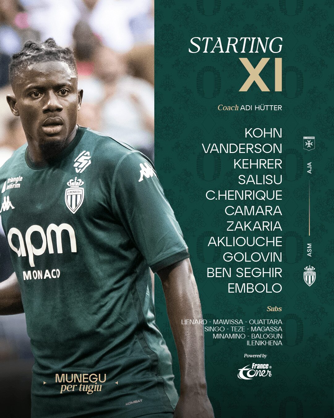 Substitutes: Lienard, Ouattara, Magassa, Mawissa, Singo, Teze, Minamino, Balogun, Ilenikhena