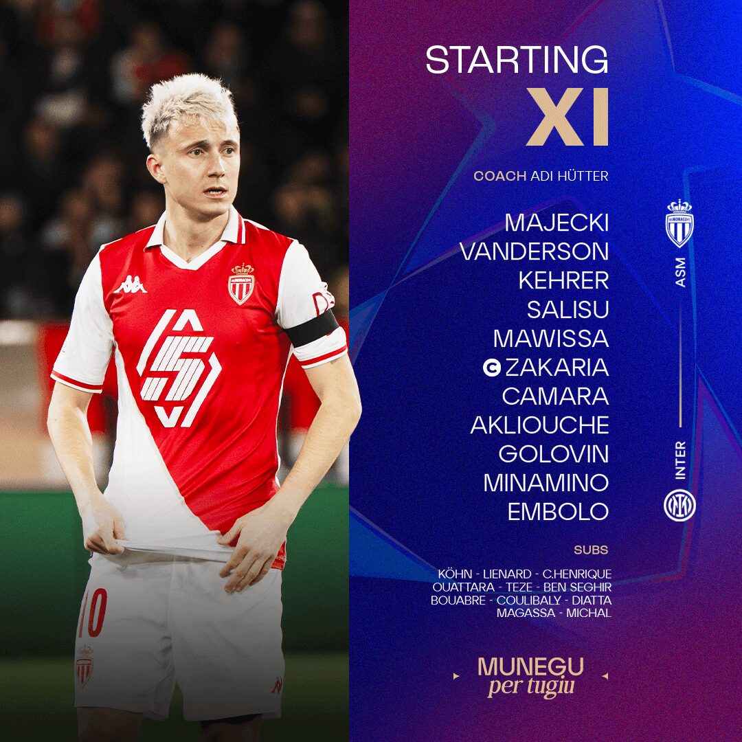 Bookings: Zakaria (2') and Vanderson (45+2') for AS Monaco; Pavard (65') and Asllani (82') for Inter Milan