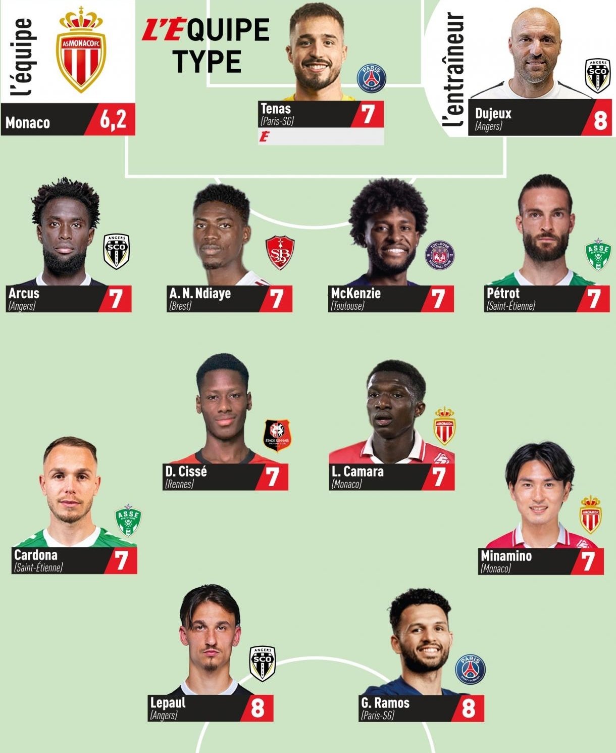 The two players were therefore logically in the fight for the MVP title, but it was the number 18 who was elected with 80% of the votes for the fifth time this season. It was a logical award given that he also proved invaluable, shooting three times, including two on target, touching the ball eight times in the opponent's box, suffering two fouls and winning four duels. But that's not all, as he also featured in the Team of the Week alongside Lamine Camara and AS Monaco as a whole.Bravo Taki’!