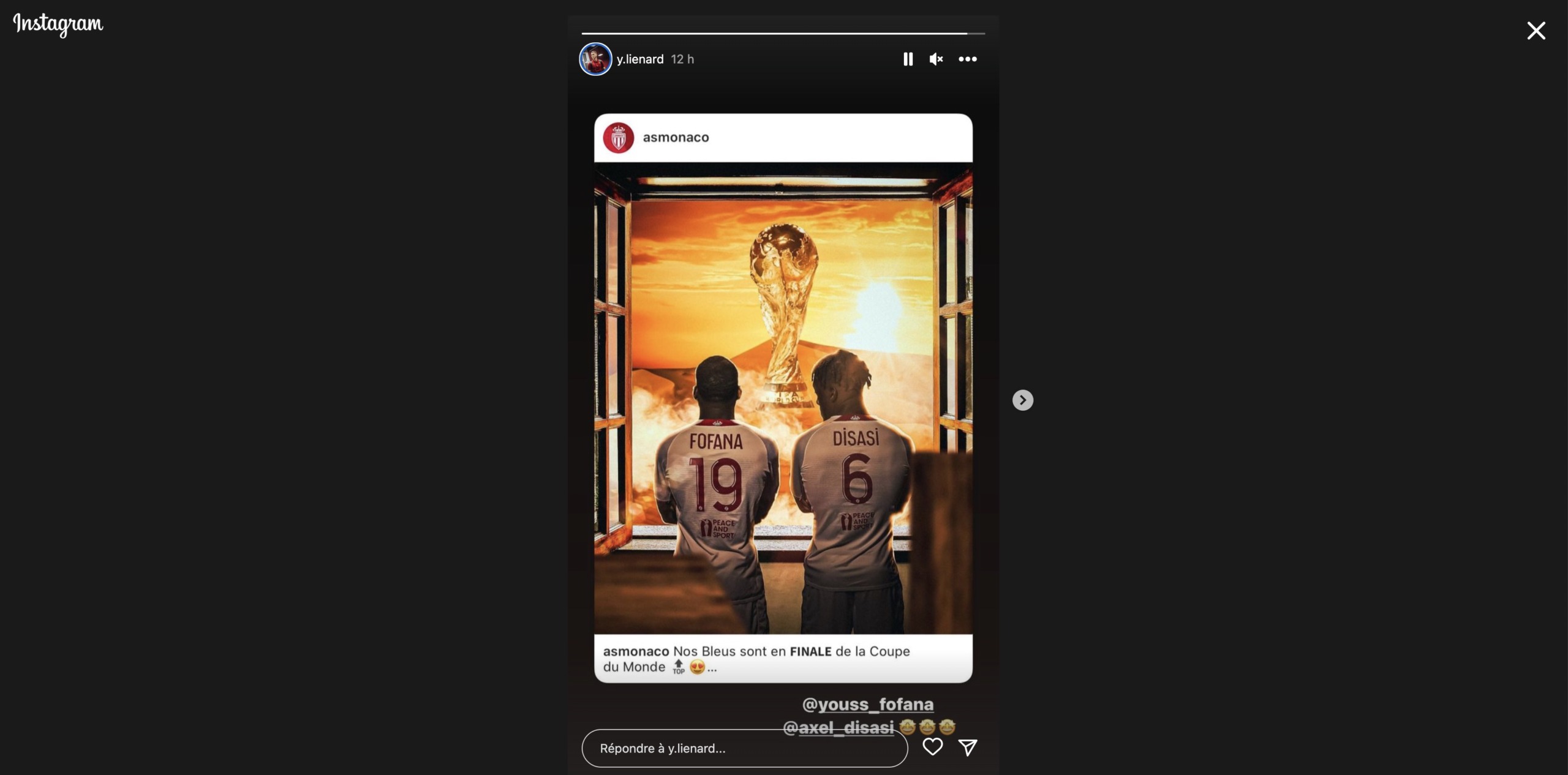 Ils marquent l’histoire ! En devenant les 9e et 10e joueurs de l’AS Monaco à se hisser en finale d’un Mondial, Youssouf Fofana et Axel Disasi marchent sur les pas de leurs glorieux prédécesseurs, dont cinq sont déjà allés au bout. En effet, en venant à bout du Maroc (2-0), l’Équipe de France de nos deux rouge et blanc s’est donné le droit de rêver à une troisième étoile, avant la finale contre l’Argentine ce dimanche (16h). En attendant, ce succès en demi-finale de Coupe du Monde a engendré de nombreux messages de félicitations de la part d’actuels ou d’anciens coéquipiers monégasques. Tour d’horizon des réseaux. 📲