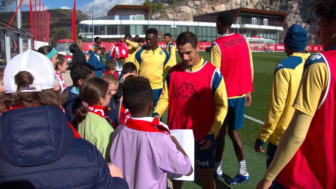 Les héros du jour, accompagnés par les services départementaux de prévention spécialisée et services éducatifs de milieu ouvert, ont d'abord assisté aux premières loges à l'entraînement des hommes d'Adi Hütter. Installés dans la tribune jouxtant le terrain 1, ils ont pu observer attentivement les exercices mis en place par le staff et apprécier la technique des joueurs monégasques.