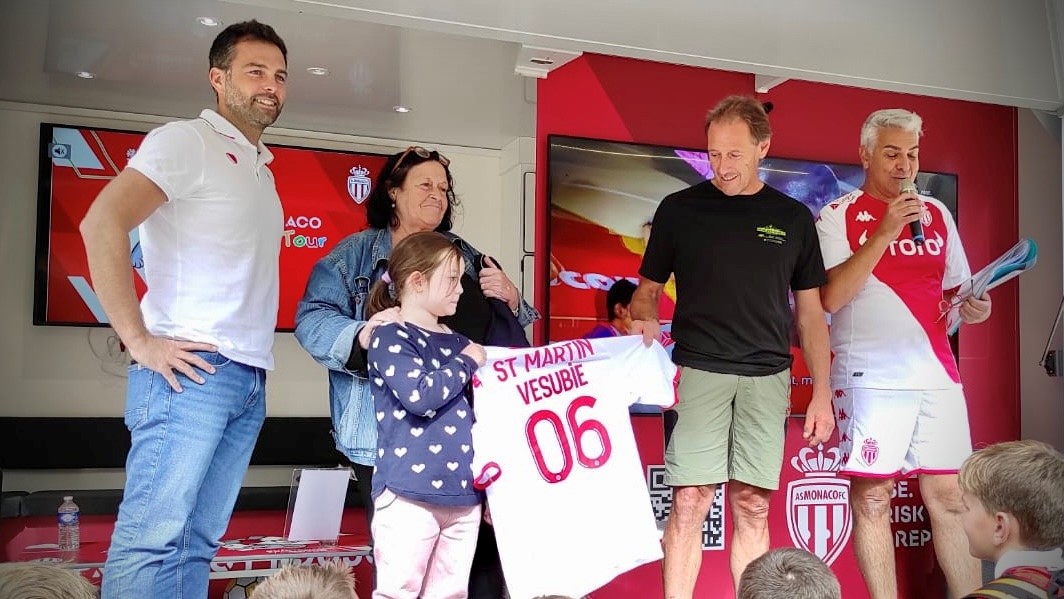 Ils étaient accompagnés de Thierry Ingigliardi, Adjoint au Maire de Saint-Martin Vésubie, qui s’est vu remettre symboliquement un maillot de l’AS Monaco par Antoine Vion, Directeur Organisation, Sureté et Sécurité du Club, afin de remercier toute la commune pour son chaleureux accueil.