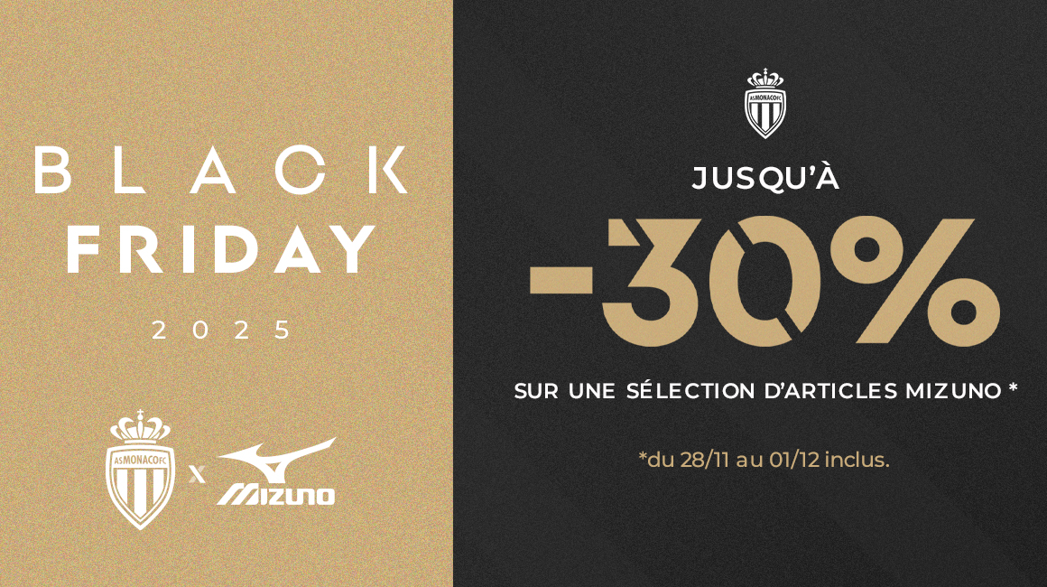 C’est le moment de faire tes cadeaux de Noël ! Grâce à l’AS Monaco, profite du Black Friday dès ce vendredi, et ce jusqu’au dimanche 30 novembre inclus, pour faire des affaires sur la boutique en ligne du club en bénéficiant de prix cassés sur une large sélection de produits, allant jusqu’à 30% de réduction.
