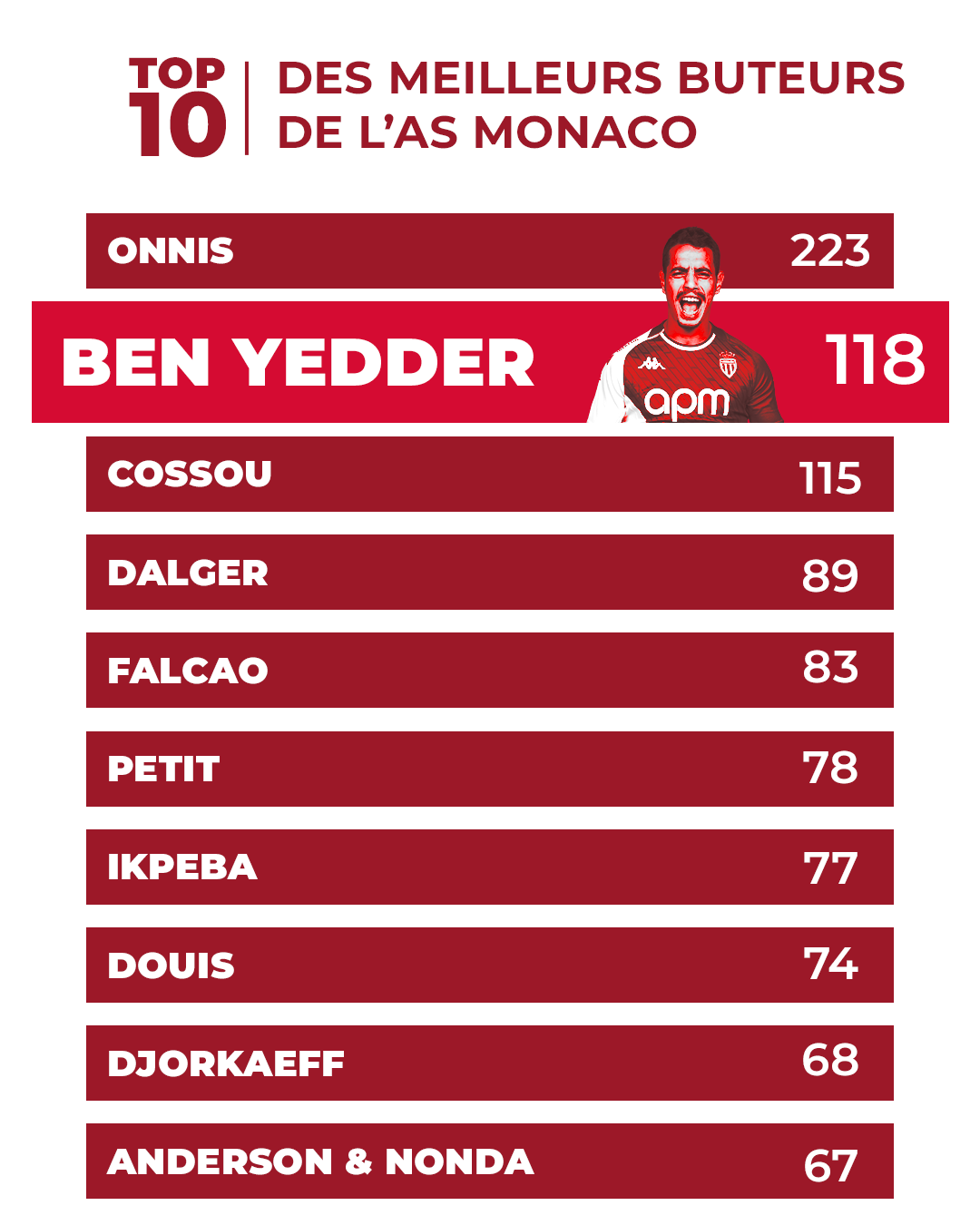 Enfin, très efficace en tant que super-sub, il a marqué 14 fois en sortie de banc avec l’AS Monaco - 17 durant toute sa carrière -, ce qui en fait le deuxième meilleur réalisateur de l’histoire du championnat derrière Souleymane Camara, formé… à l’Academy, toujours selon Opta. Des chiffres qui font tourner la tête, et qui prouvent bien que Wissam Ben Yedder fait partie de la caste des grands buteurs tricolores au 21e siècle.Daghe Wissam ! 🇲🇨