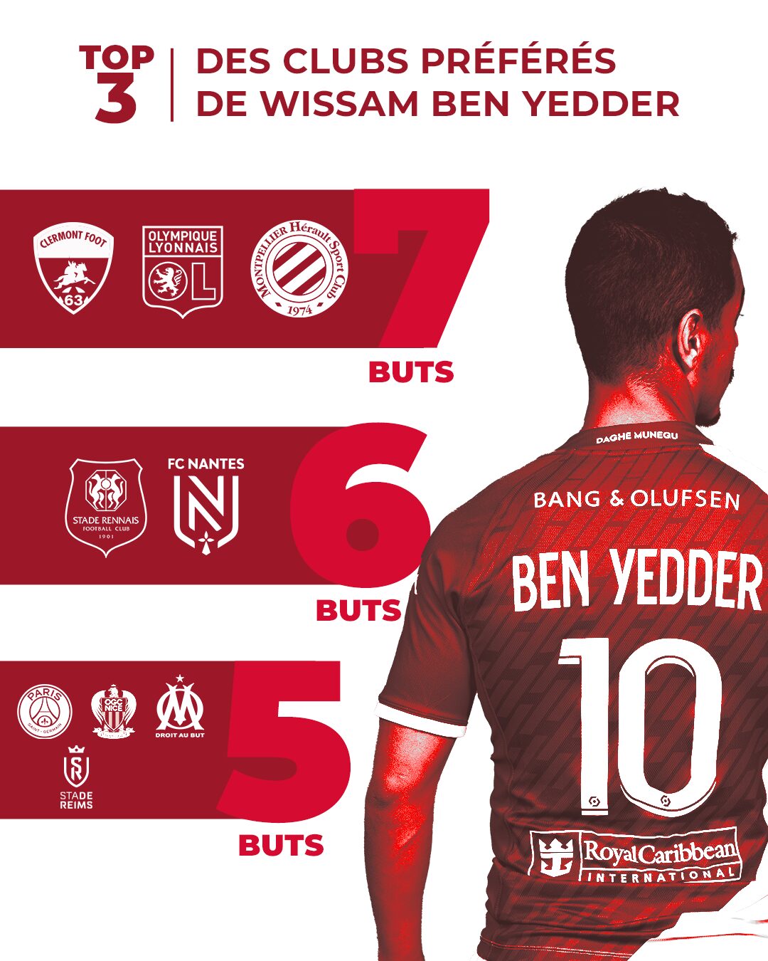 Preuve de plus, s’il en fallait, qu’il est un homme des grands rendez-vous sous les couleurs rouge et blanche, puisque l'OL, à égalité avec Montpellier et Clermont, est sa proie favorite avec sept buts. Avant de retrouver derrière des équipes comme Rennes et Nantes avec six unités ainsi que le PSG, Nice ou encore Marseille avec cinq buts. Il a d’ailleurs marqué une fois cette saison face aux Phocéens lors du match retour d’une reprise parfaite du gauche, montrant son habileté des deux pieds.