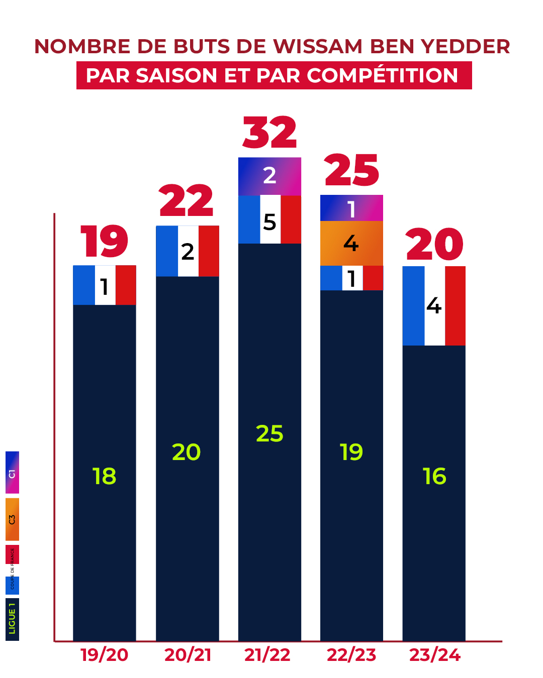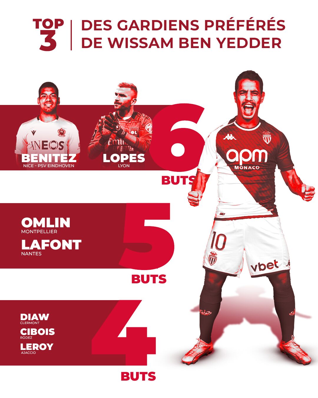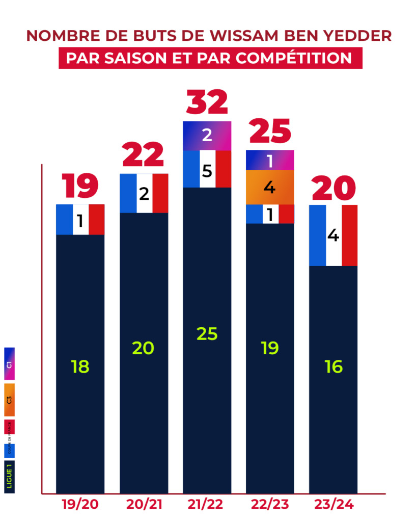 Ce qui le place, là aussi, au deuxième rang dans la hiérarchie monégasque derrière la légende argentine. Wissam a enfin su faire parler son talent devant le but en Europe avec sept réalisations inscrites.