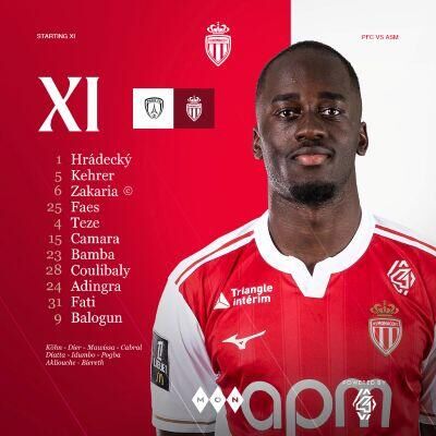 AS Monaco : Hrádecký - Kehrer (Pogba, 69e), Zakaria ©, Faes - Teze (Diatta, 46e), Camara (Mawissa, 46e), Bamba, Adingra - Fati (Biereth, 87e), Coulibaly (Akliouche, 69e) - Balogun