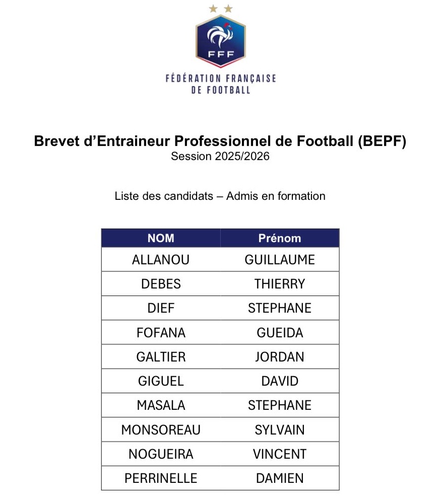 L’AS Monaco félicite Damien pour son admission à la formation au BEPF et lui souhaite bonne chance pour cette prochaine session qui aura lieu tout au long de la saison 2025-2026.