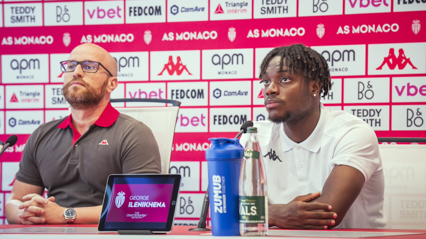 "Bonjour à tous. Nous sommes très heureux d’être ici aujourd’hui pour vous présenter le nouveau joueur de l’AS Monaco. Bienvenue George !" Tels ont été les premiers mots de Thiago Scuro ce mardi matin, pour introduire George Ilenikhena à la presse au Centre de Performance. Une première devant les médias pour le nouveau numéro 21 monégasque, qui a précédé un point informel du Directeur Général du Club.Extraits🎙️