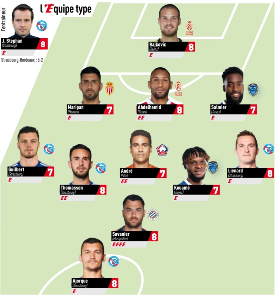 L’Équipe type de la J16 =Rajkovic -Maripán, Abdelhamid, Salmier - Guilbert, Thomasson, André, Kouamé, Liénard - Savanier - Ajorque