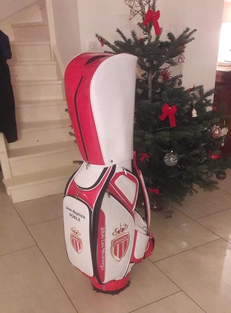 Non pas des maillots spécialement mais en revanche j’ai mon sac de golf personnalisé de l’AS Monaco. Il est brodé aux couleurs du Club avec mon prénom, mon nom et des expressions monégasques comme le Daghe Munegu Per Tugiu. Je collectionne principalement des polos, et depuis cinq ou six ans, j’ai le rituel d’en acheter deux parce que je ne peux pas concevoir pratiquer le golf sans ce vêtement. Je suis plus fan des objets du quotidien comme des goodies, casquettes ou survêtements que des maillots.