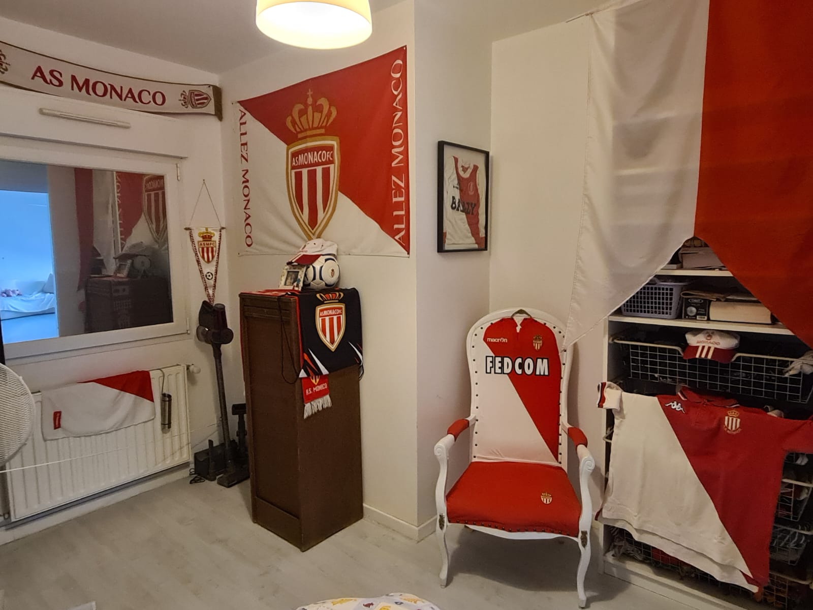 Oh la la oui ! J’ai une chambre, c’est un musée. J’ai par exemple un fauteuil d’une époque où on a été champion de France. Il est vieux, ce sont mes enfants qui me l’ont offert à mes 50 ans, c’était donc il y a 17 ans. Mais on peut aussi trouver des fanions, des ballons à l'effigie de l'AS Monaco, des casquettes, des maillots…
