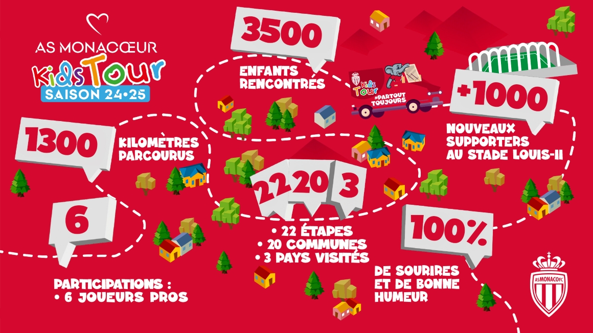 Au fil des étapes, le Kids Tour s’est arrêté dans des communes des Alpes-Maritimes, du Var et des Bouches-du-Rhône, avec une incursion au-delà de la frontière italienne, sans oublier Monaco. Un itinéraire varié, en cohérence avec la volonté du Club et de son Président Dmitry Rybolovlev de renforcer les liens avec l’ensemble du territoire, au contact de ses jeunes supporters, partout où ils se trouvent.