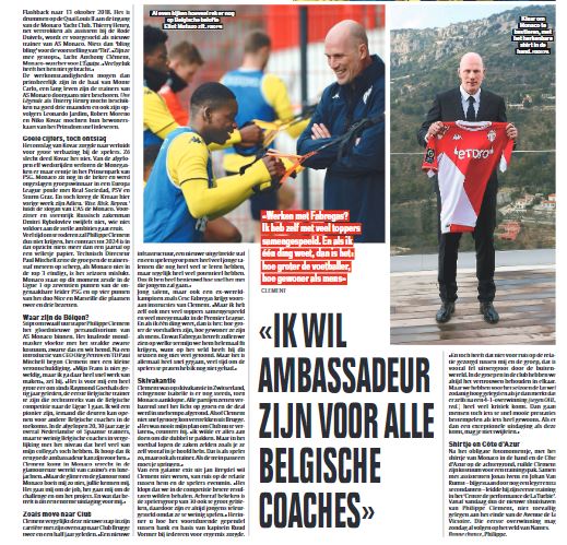 Vainqueur des trois dernières éditions de la Jupiler Pro League, Philippe Clement est particulièrement suivi dans son pays, qu’il a représenté en tant que joueur lors de la Coupe du Monde 1998. Dans son édition du jour, la DH, l’un des principaux quotidiens francophones chez nos voisins belges, cite d’ailleurs le nouvel entraîneur monégasque pour expliquer ses premiers pas en Principauté : « Je veux une équipe qui domine le jeu ».