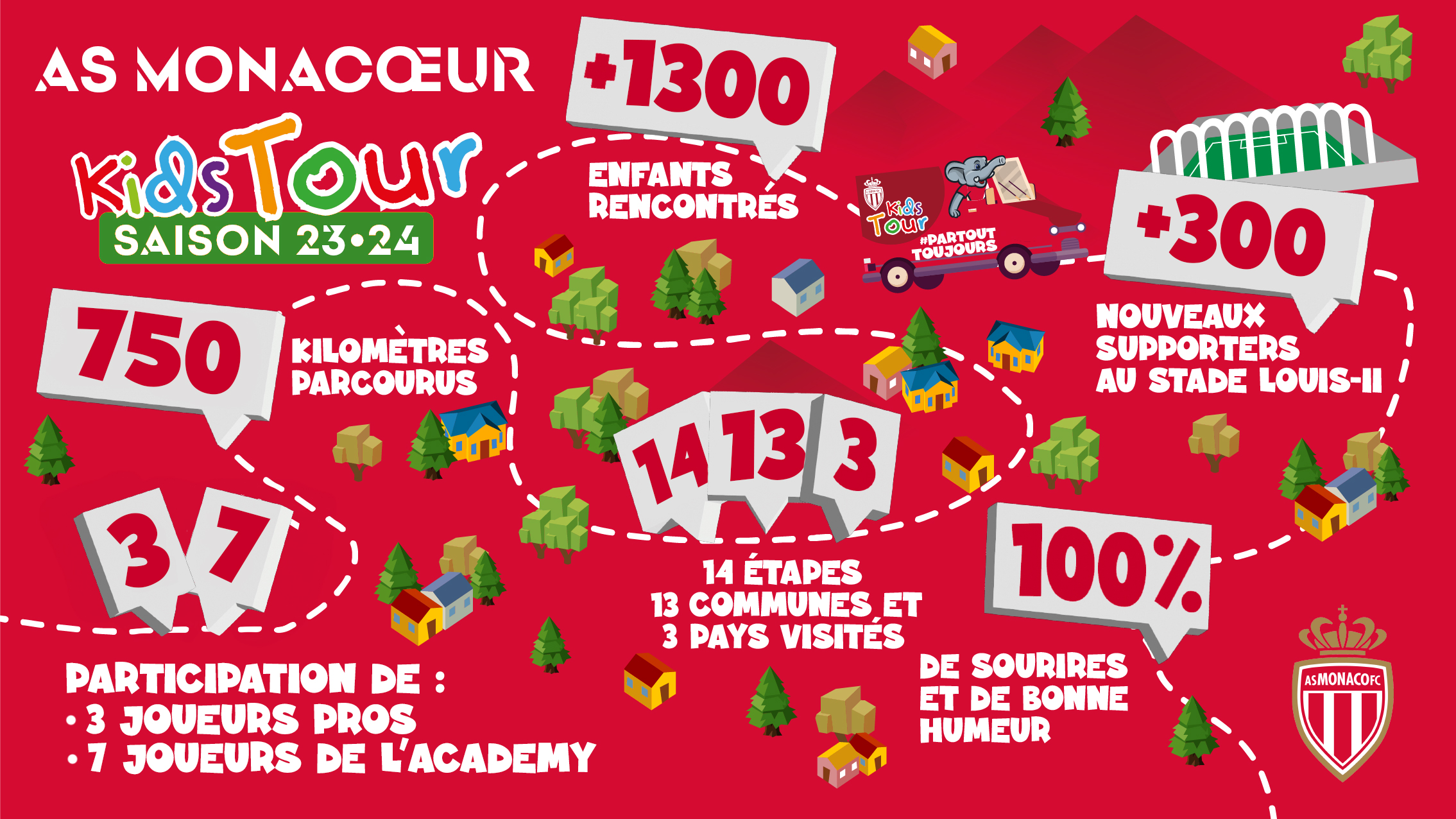 Alors que la dernière halte de l'année 2023 a eu lieu samedi 16 décembre au Village de Noël de Monaco, en présence de Caio Henrique, la caravane Rouge & Blanche a déjà réalisé 14 étapes depuis son départ de Cap-d'Ail, le 2 septembre dernier.