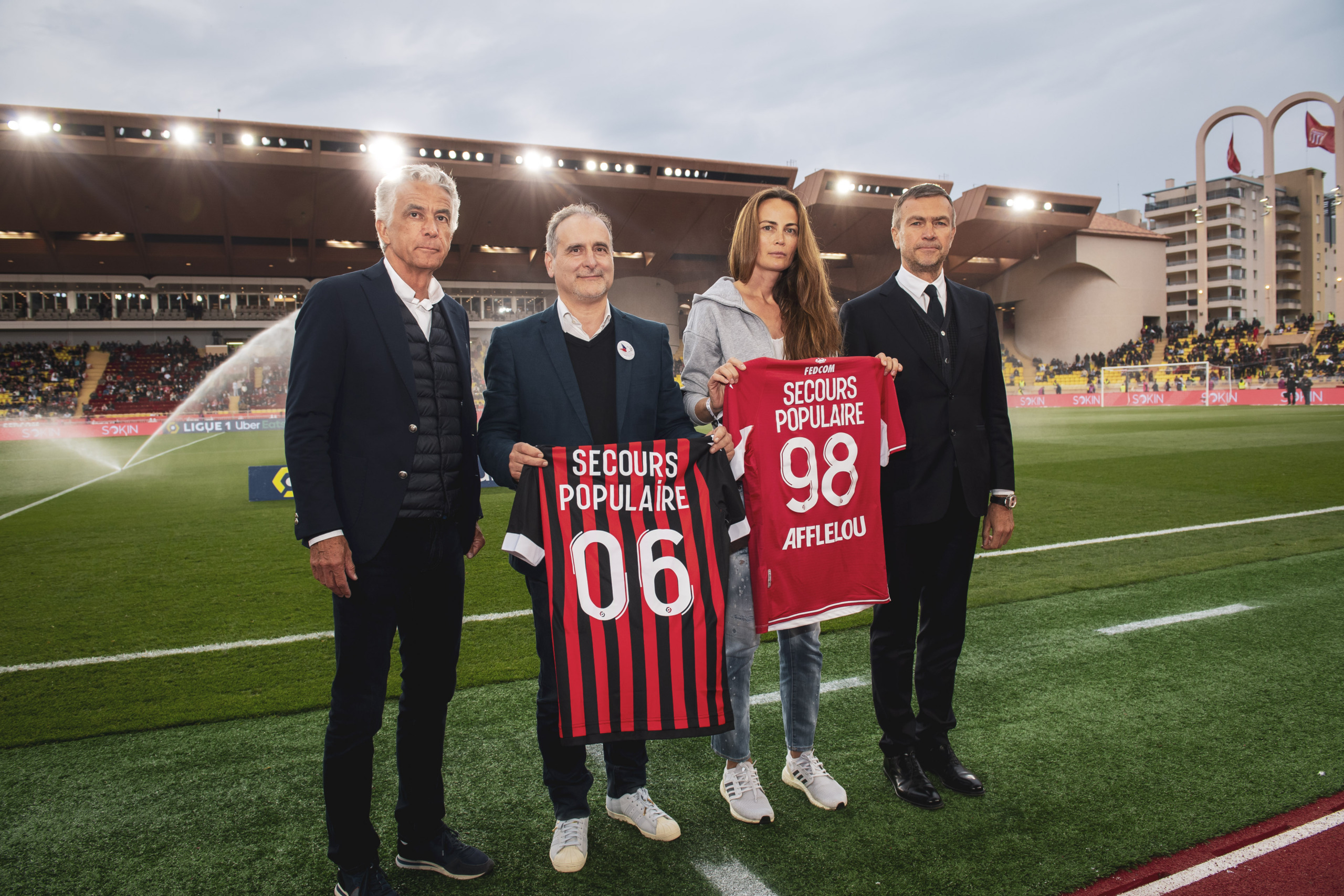 A l’occasion du derby remporté par les Rouge et Blanc, l’AS Monaco et l’OGC Nice se sont unis au Secours Populaire en faveur des réfugiés ukrainiens. Alors que cinquante bénévoles de l’association et familles de réfugiés ont assisté à la rencontre, Jean Stellittano, secrétaire général du Secours Populaire des Alpes-Maritimes et Olena Vasina, bénévole auprès des réfugiés, ont donné le coup d’envoi de la rencontre. Quelques minutes plus tôt, Oleg Petrov, Vice-président Directeur Général de l’AS Monaco et Jean-Pierre Rivère, Président de l’OGC Nice, leur avaient remis symboliquement un maillot de chaque club.