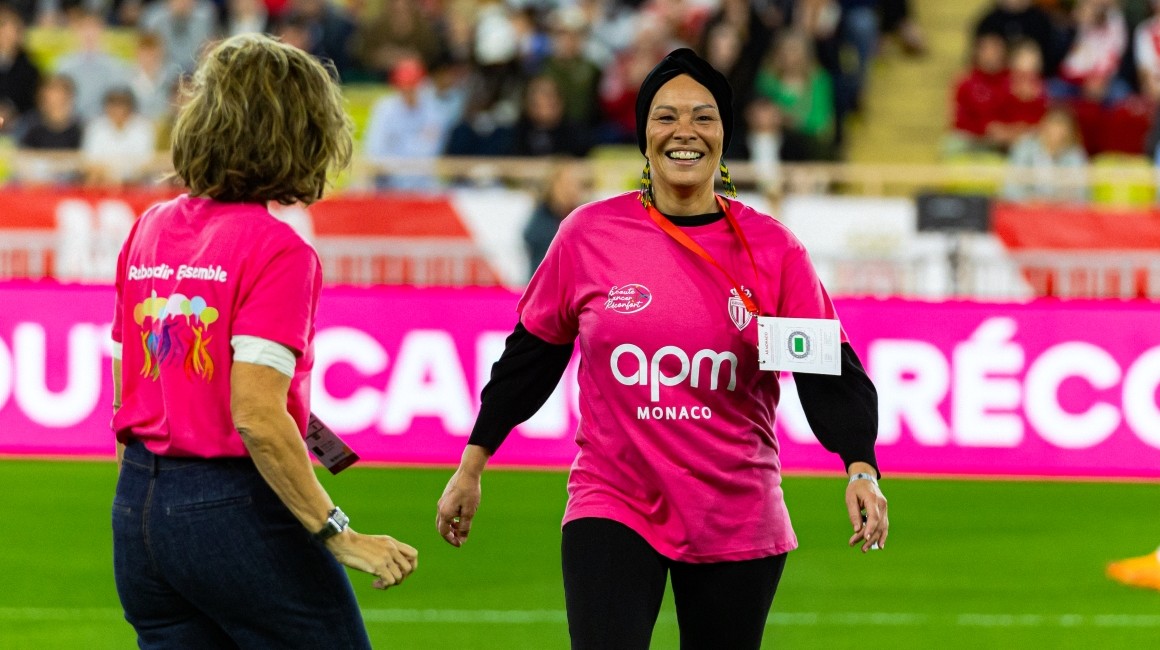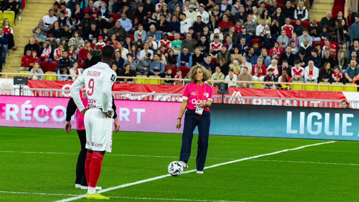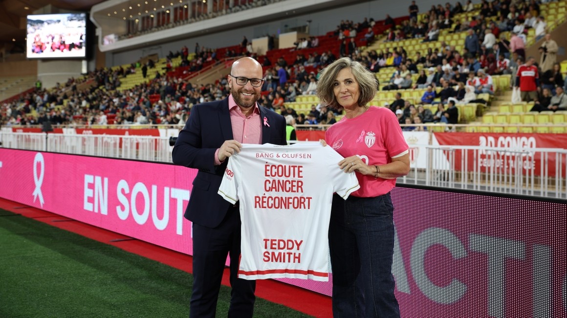 Durant l’échauffement des acteurs de la rencontre, les joueurs monégasques ont également arboré un t-shirt rose spécial, orné du logo de l’association, tandis que Thiago Scuro, Directeur Général de l’AS Monaco, a symboliquement remis un maillot du Club à la Présidente d’Ecoute Cancer Réconfort.