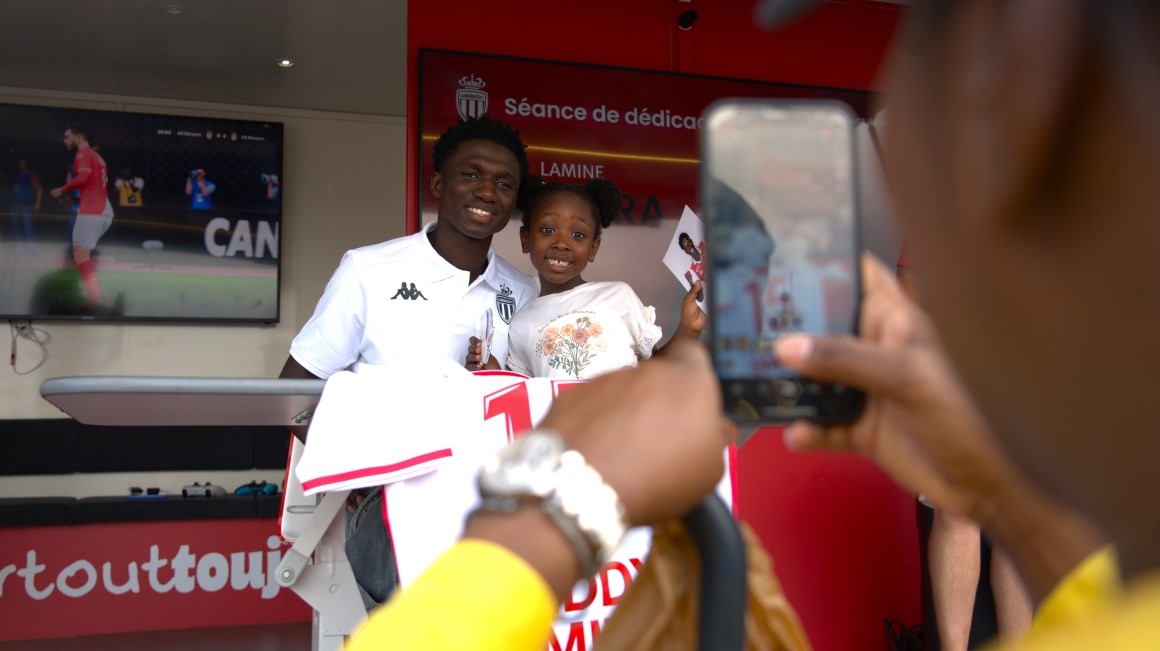 Après George Ilenikhena il y a quelques jours, le Village AS Monaco a accueilli ce mercredi une nouvelle recrue Rouge & Blanche... Lamine Camara, le nouveau milieu de terrain du Rocher, a en effet pris part à une grande séance de dédicace à laquelle les supporters monégasques ont été nombreux à participer !