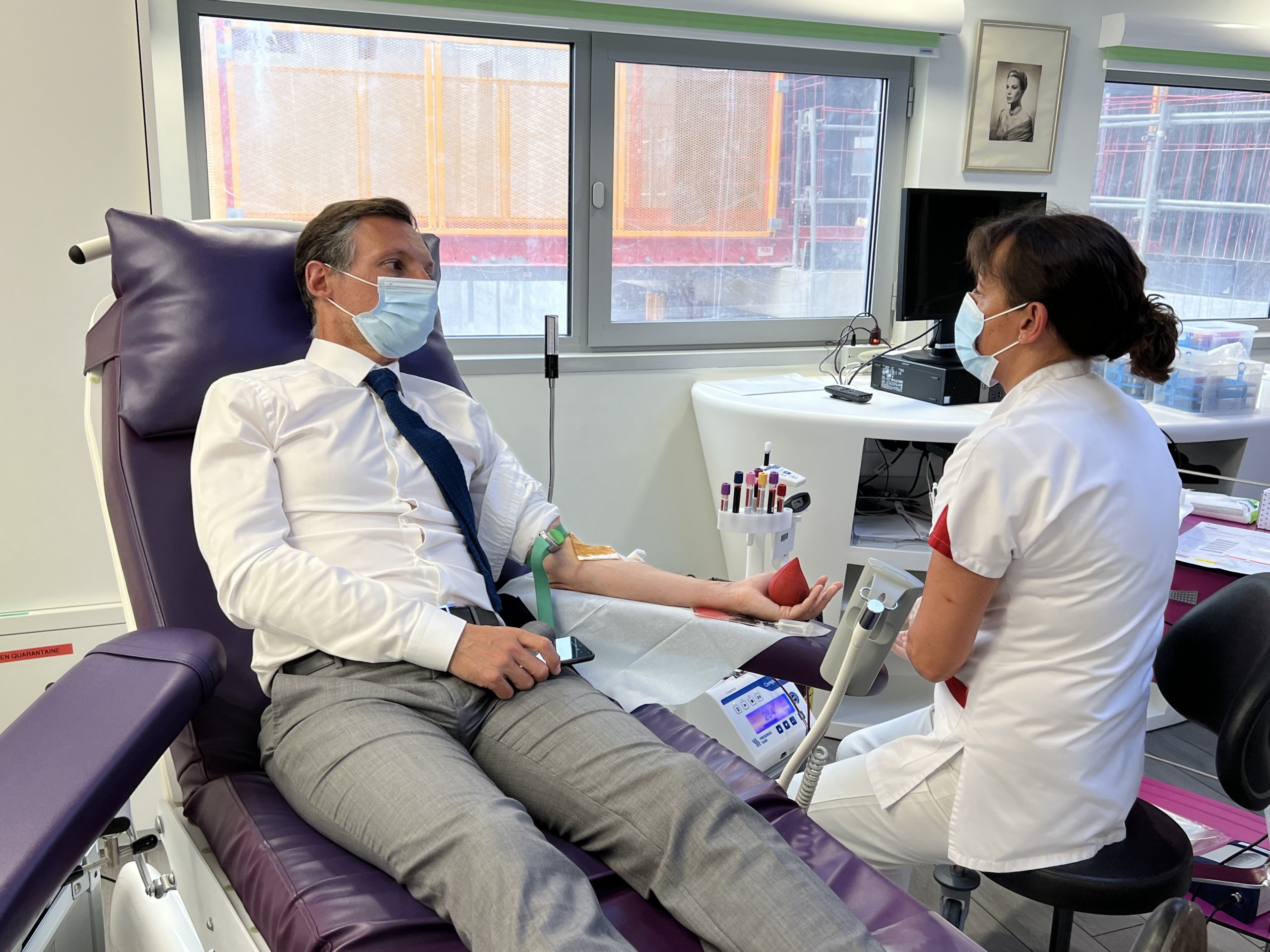 Nommé Directeur Général de l’AS Monaco le 24 mai dernier, Jean-Emmanuel de Witt s’est également rendu au CHPG. Accueilli mercredi par le Dr Hervé Renard, Chef de Service du Centre de Transfusion Sanguine et Christine Boggiano, Présidente de l’Amicale des donneurs de sang de Monaco, le dirigeant a donné son sang, puis visité les installations.