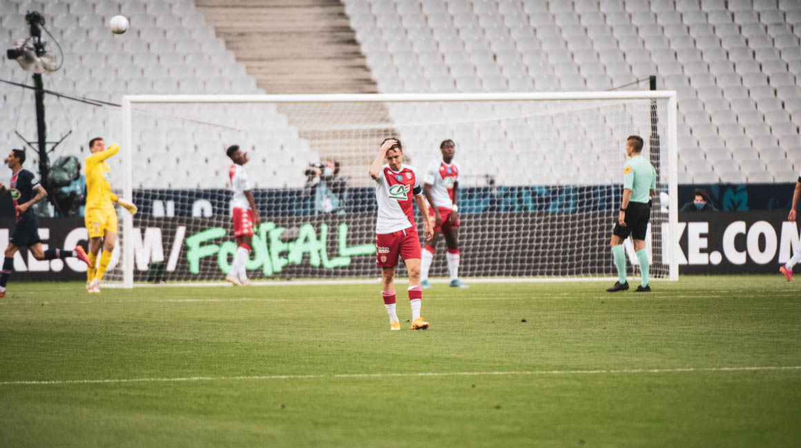 Pour cette finale de Coupe de France opposant l’AS Monaco au Paris Saint-Germain, Niko Kovac alignait une composition en 4-4-2 hybride, passant en 4-5-1 en phase défensive. Sur les ailes, on retrouvait donc Ruben Aguilar à droite et Kevin Volland à gauche. La pointe de l’attaque était occupée par Wissam Ben Yedder.