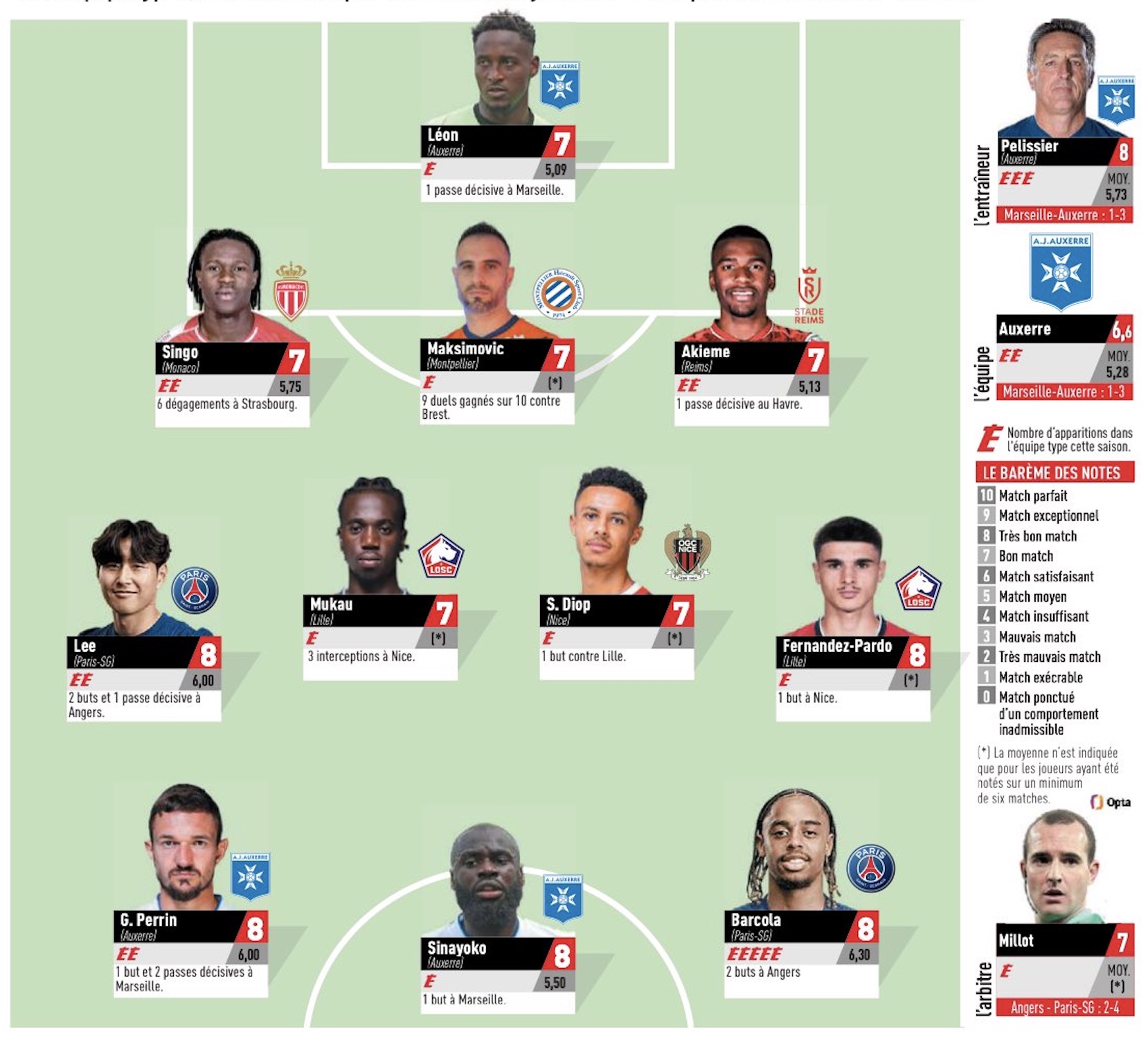 Auteur respectivement d’un doublé et d’une passe décisive, Eliesse Ben Seghir et Maghnes Akliouche ont en effet également hérité d’un 7, tout comme le coach monégasque, Adi Hütter. Une belle performance collective, avant de partir en sélection.Daghe SinGOAT !👏