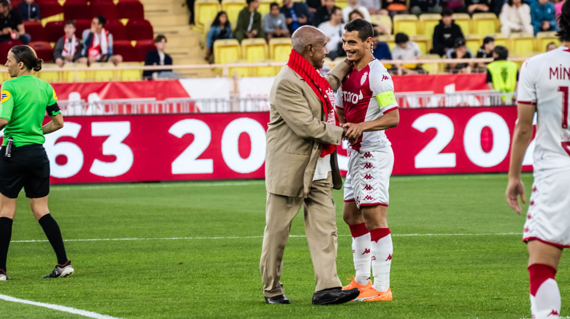 Écharpe rouge et blanche autour du cou, le pas assuré, l’air jovial et détendu, les anciens champions de l’AS Monaco traversent la piste d’athlétisme qui entoure la pelouse du Stade Louis-II, honorant le public de leur présence à l’occasion du dernier match de la saison ce samedi face à Toulouse.