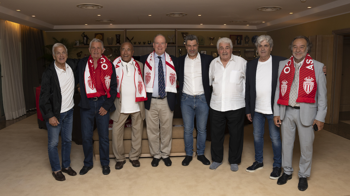 En ce premier samedi de juin, l’AS Monaco a célébré les 60 ans du doublé 63 et les 20 ans de la Coupe de la Ligue 2003 en compagnie de ces prestigieux invités. Avant la rencontre, le Directeur Général Ben Lambrecht les a accueillis avant de leur remettre un maillot spécial.