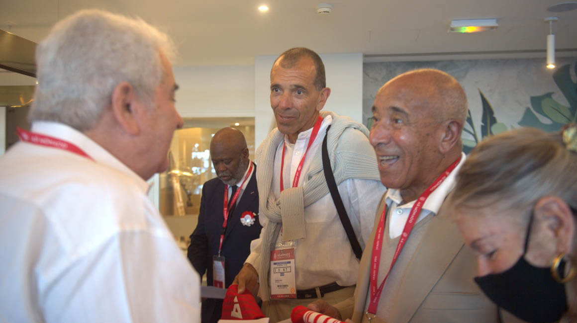 Non loin de là, le milieu de terrain grec Andreas Zikos, vainqueur de la Coupe de la Ligue 2003 et artisan de l’épopée 2004, se remémore ses années en Principauté (2002-2006) en compagnie de la légende Jean Petit, son entraîneur adjoint d’alors, sous les yeux d’ Alfred Vitalis et Raoul Nogues, deux autres glorieux anciens de la maison (*).
