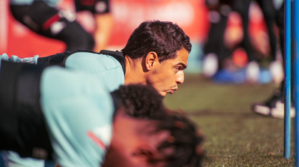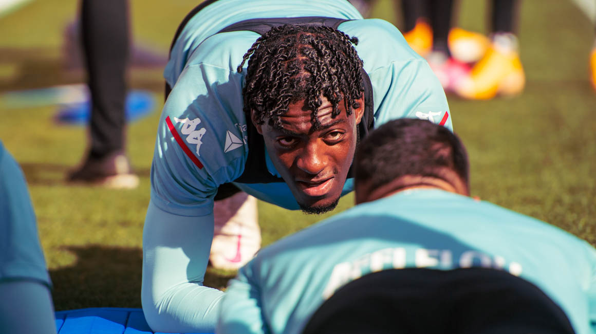 Le groupe au travail au centre d'entraînement avant Lyon