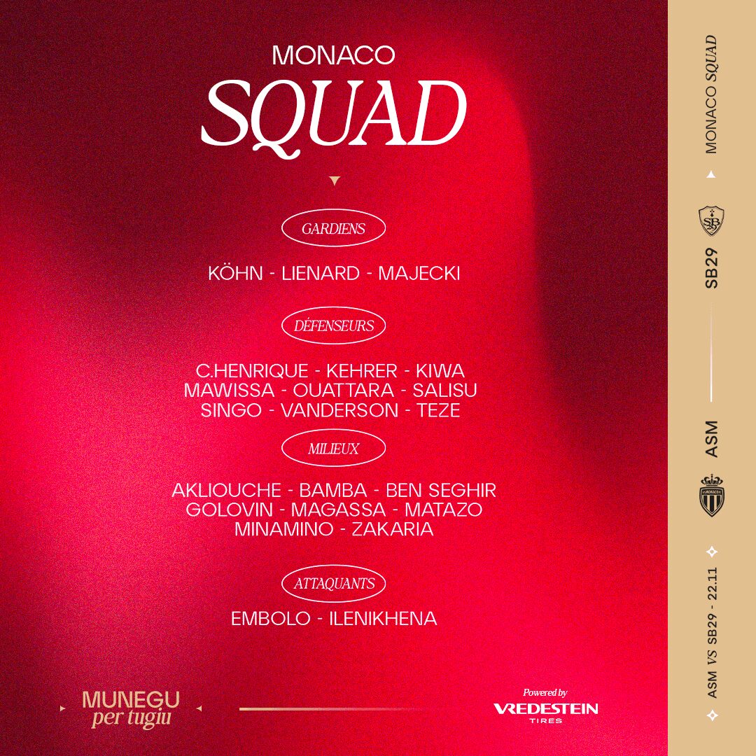 👥 Le groupe de l’AS Monaco 🆚 Brest