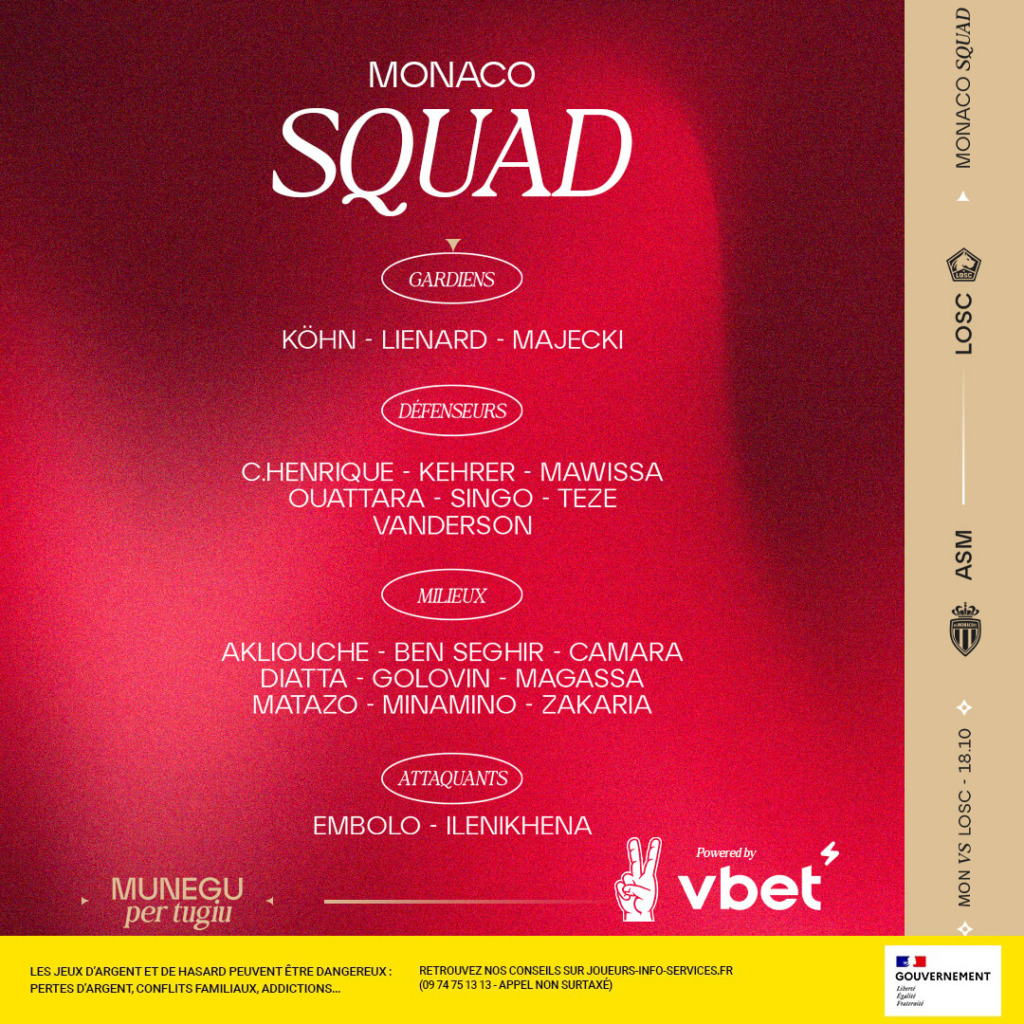 👥 Le groupe de l’AS Monaco 🆚 Lille
