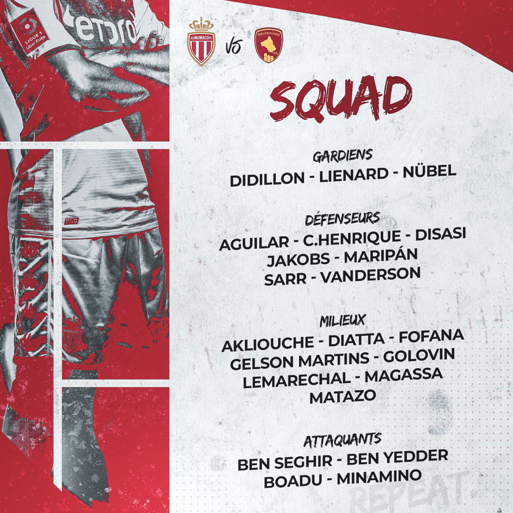 Alors avant d’assister à cette rencontre, qui sera à suivre sur l’antenne de BeIN Sports Max 6 à partir de 18h, et en live-texte sur asmonaco.com, voici le groupe convoqué pour ce 32e de finale.
