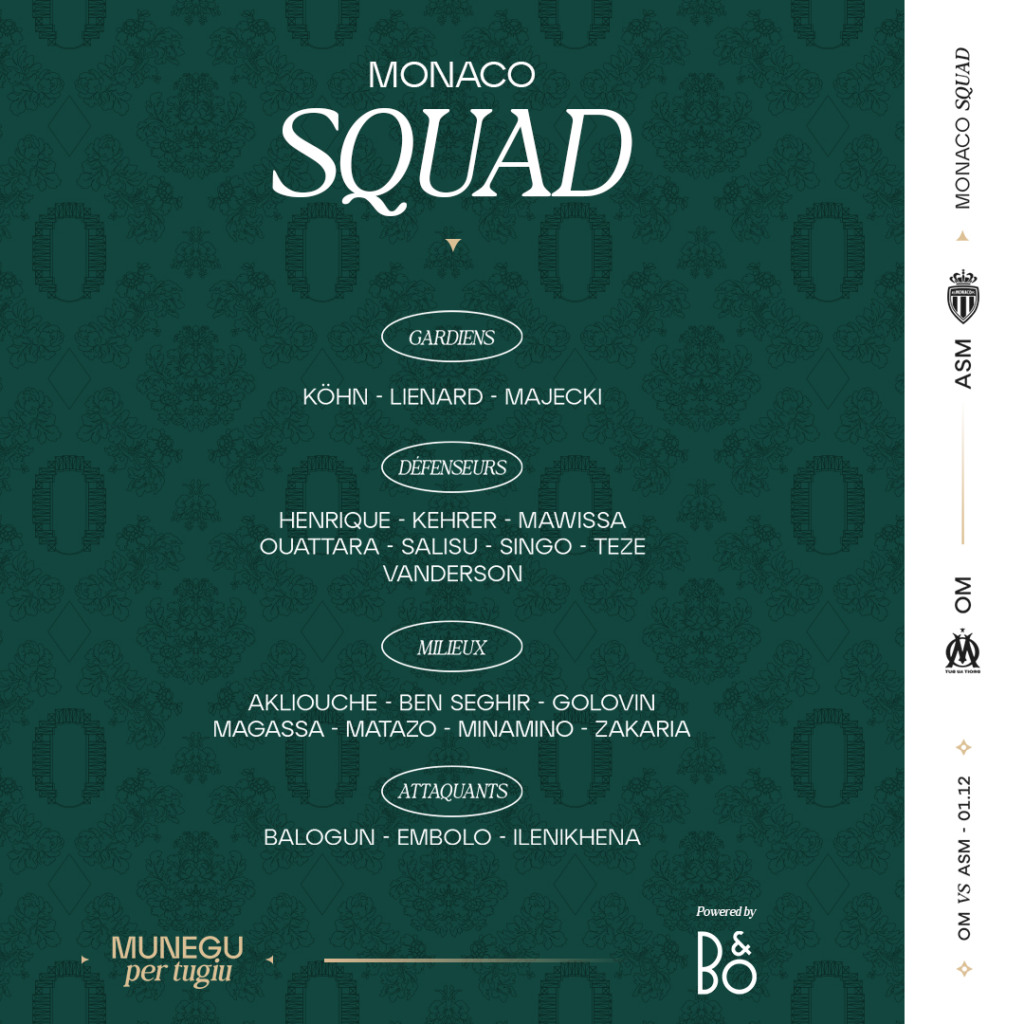 👥 Le groupe de l’AS Monaco 🆚 Marseille