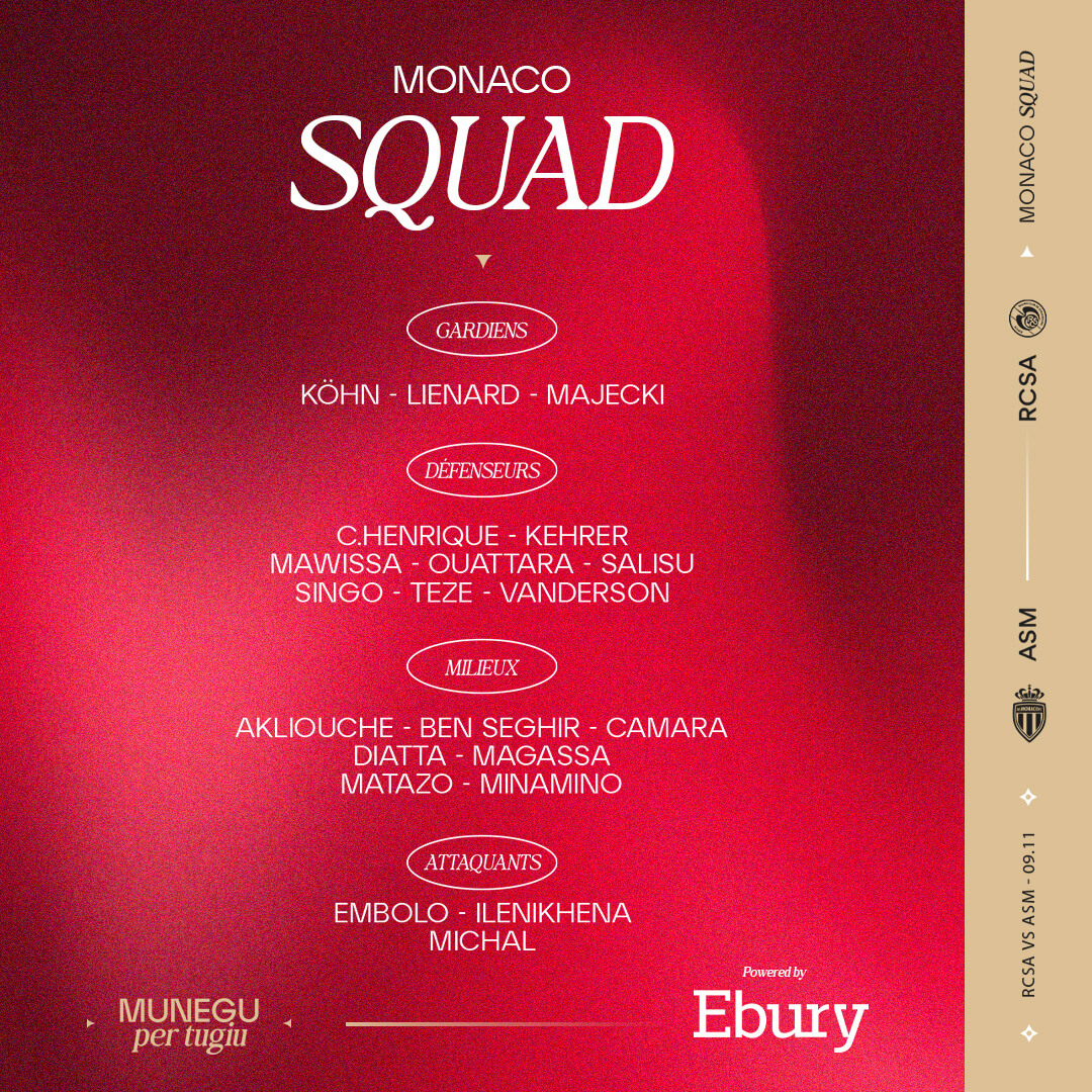 Un duel très attendu, qui sera en tout cas à suivre sur l’antenne de beIN Sports 1 et à suivre en live-texte sur asmonaco.com. Mais avant d’en découdre face à cette formation qui pratique un football "très intense", comme l’a très bien décrit le coach monégasque en conférence de presse, voici le groupe convoqué par Adi Hütter.