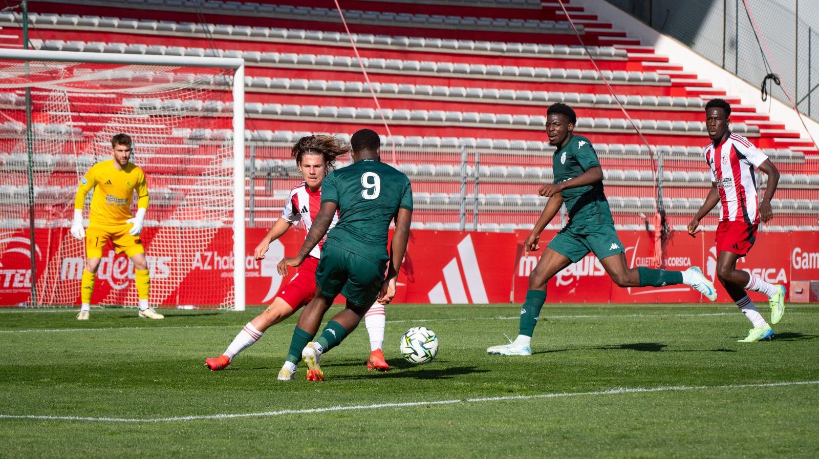 Suite à un court arrêt dans le match après un contact entre Yann Liénard et Valy Konaté, Romaric Etondé se crée la première grosse situation du match mais sa frappe n’attrape pas le cadre (30e). Les acéistes mettent ensuite le portier monégasque à contribution mais ce dernier répond bien présent (45e).