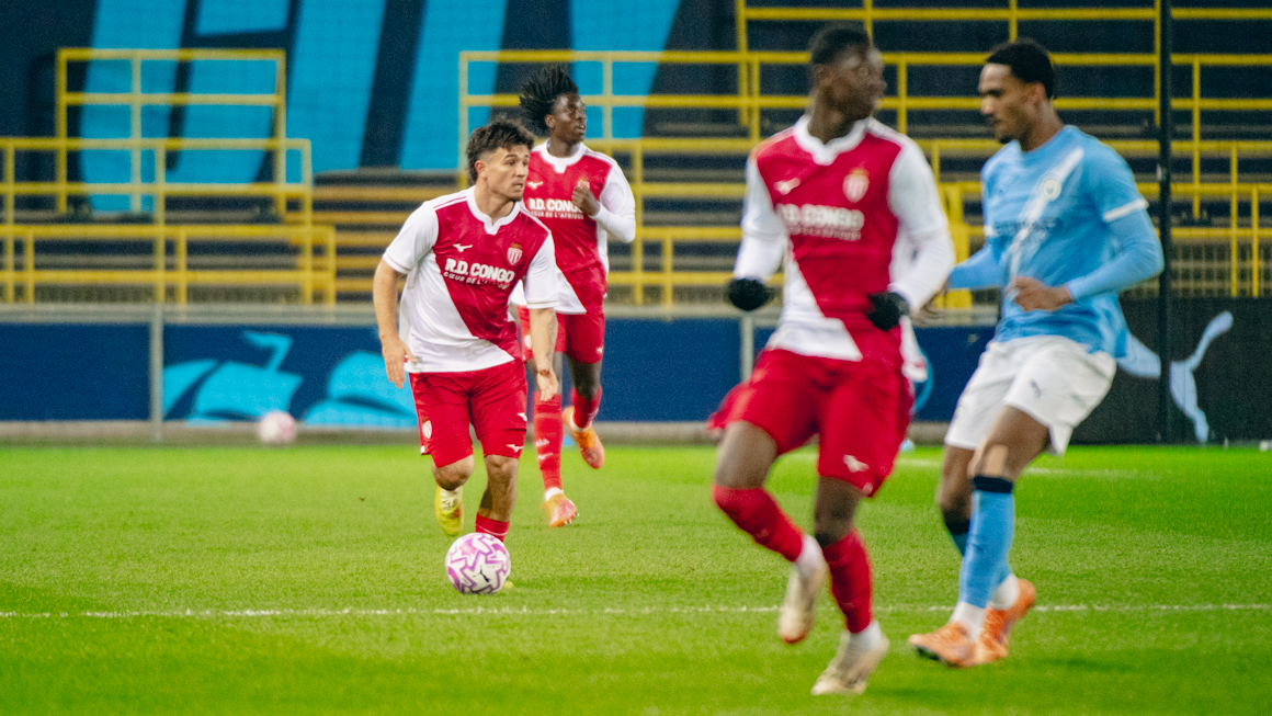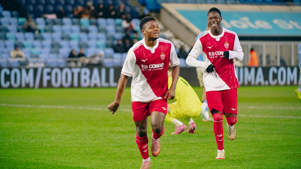 Gênée par un vent contraire, la défense monégasque subissait quelque peu la pression adverse mais restait solide tout au long de cette première période. Aux abords de la surface anglaise c’est à nouveau Yasir Mouh qui se montrait dangereux à la 40e minute, poussant le gardien à dévier son tir en corner. Si celui-ci ne donnait rien, un corner suivant au bout du temps additionnel permettait à Kevin Sitou de faire le break d’une tête puissante après avoir été parfaitement trouvé par Malick Sylla.