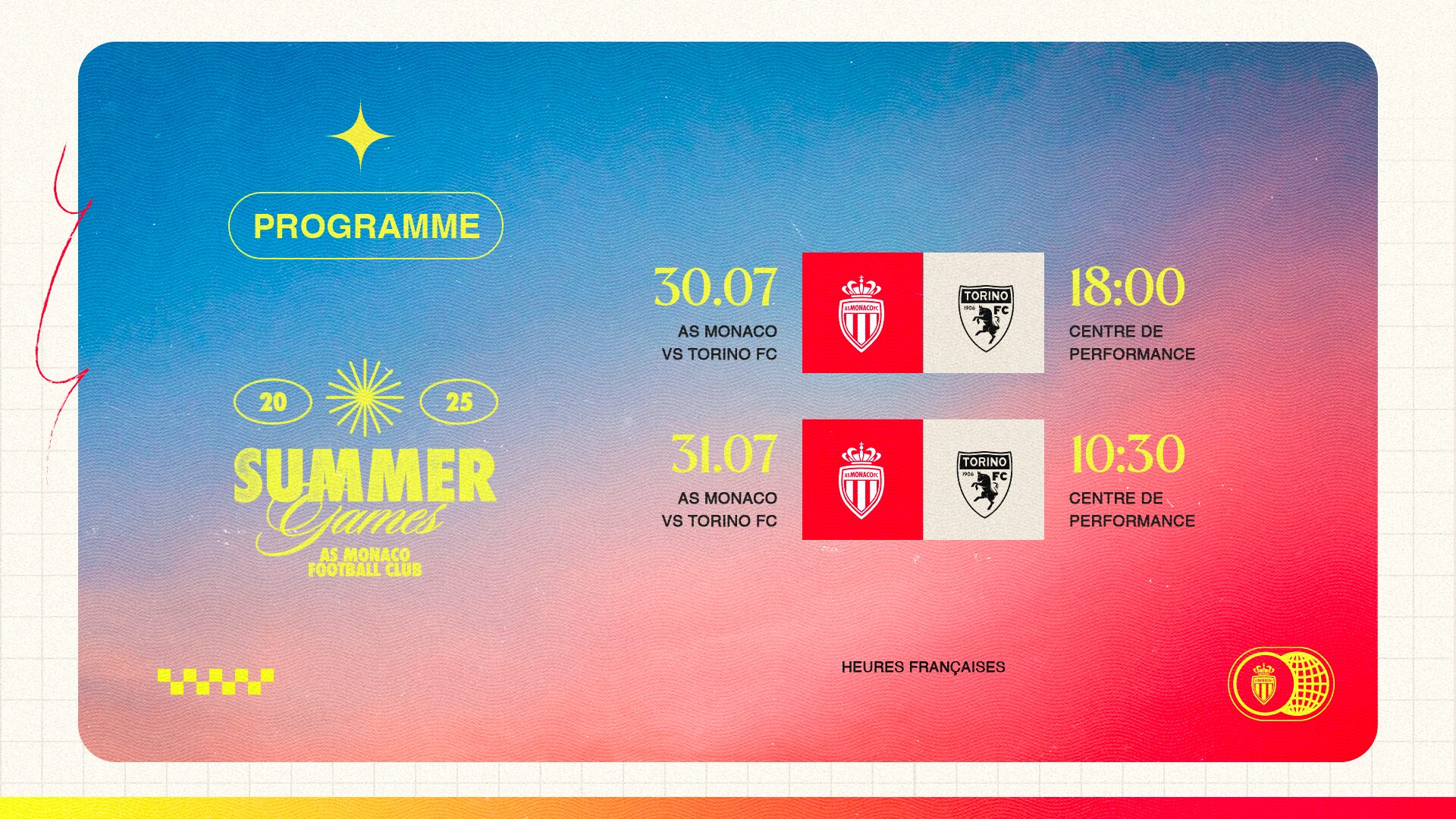 🏟️18h (Centre de Performance) : AS Monaco – Torino (Match amical)
