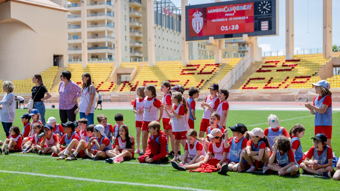 Durant la pause déjeuner, les enfants ont pu regarder sur les écrans géants du stade la rétrospective de la saison 2024/2025 des joueurs du Rocher, qui a vu ces derniers assurer le weekend dernier, grâce à leur succès face à Lyon, un nouveau podium, synonyme de deuxième qualification consécutive en Ligue des Champions.