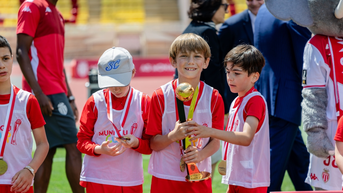 Puis, le capitaine Rouge & Blanc a accompagné le Président Dmitry Rybolovlev sur la pelouse du Louis-II pour remettre le trophée du Président de l’AS Monaco aux vainqueurs de cette 3ème édition de la Munegu Cup, débordant de bonheur d’inscrire le nom de leur école au palmarès de cette compétition qui a pour vocation de s’inscrire dans la durée,