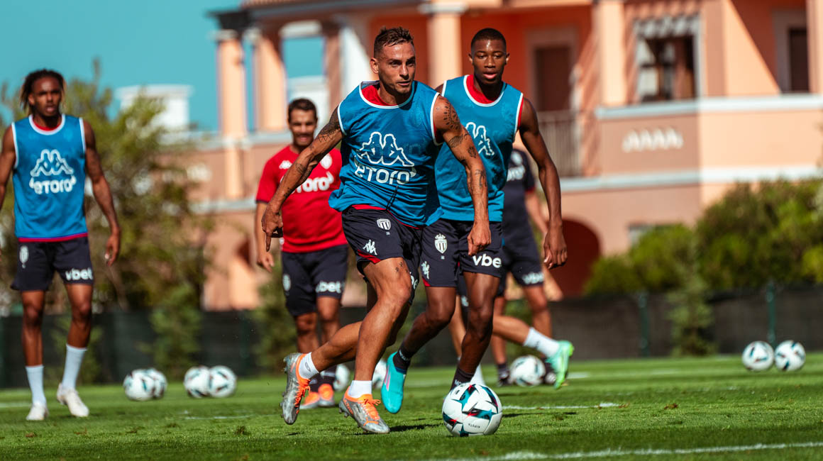 Après avoir pris leurs quartiers et déjeuné, les hommes de Philippe Clement se sont retrouvés sur le terrain dans l’après-midi pour une séance en plusieurs séquences. Après un échauffement dynamique et technique, les Monégasques ont travaillé la conservation du ballon et les transmissions, avant un exercice de centres-tirs puis de finir par des oppositions sur terrain réduit, remportées par l'équipe composée de Golovin, Gelson Martins, Marcelin, Caio Henrique, Aguilar, Volland, Fofana et Bamba.