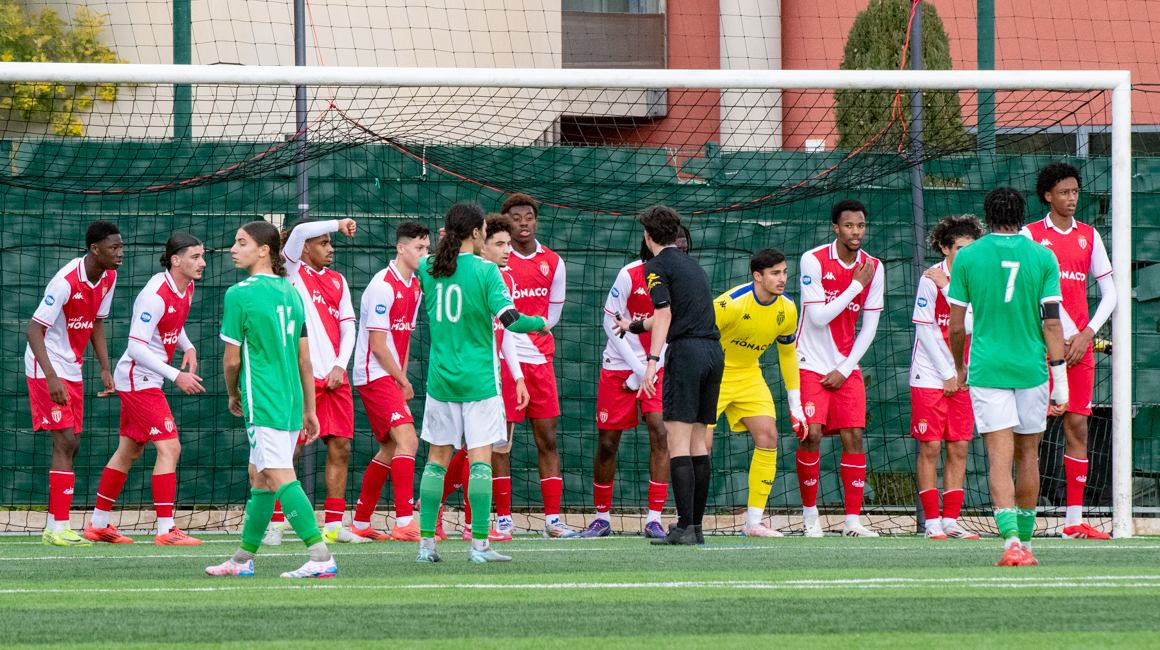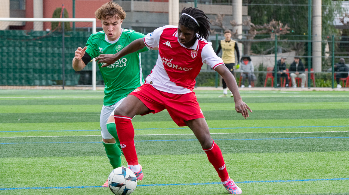 Bien décidés à prendre leur revanche après leur défaite du match aller (0-1), les U19 Stéphanois ont mis beaucoup d’engagement dans les premières minutes de la partie. Bousculés, les Rouge et Blanc ont repoussé les premiers assauts adverses. Mais Sony Yvars a trouvé la faille dès la 13e minute. Son tir puissant est allé se ficher au ras du poteau droit de la cage gardée par Yanis Benchaouch. Parti du bon côté, le capitaine monégasque n’est pas parvenu à éviter l’ouverture du score.