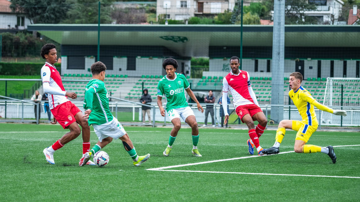 L’enjeu était tout autre samedi, pour les protégés de Frédéric Barilaro. Relégués en deuxième partie de classement, nos jeunes monégasques avaient besoin de reprendre leur marche en avant. Un défi de taille, au moment de se déplacer sur la pelouse de Saint-Etienne, habitué du podium, mais également placé dans le ventre mou en ce début d’exercice. La bataille s’annonçait rude donc, et elle va l’être.